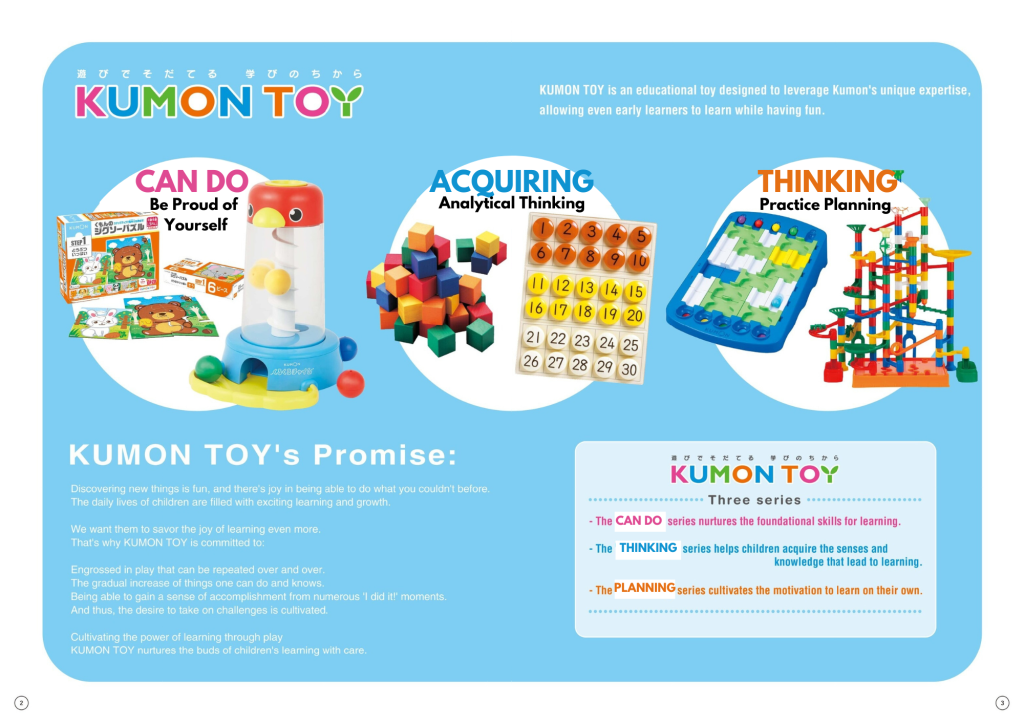 KUMON TOY is an educational toy designed to leverage Kumon’s unique expertise, allowing even early learners to learn while having fun.